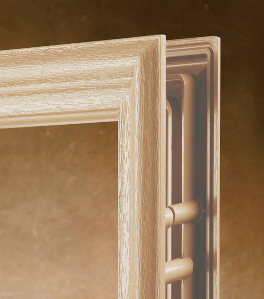 Tan frames are manufactured with a specially engineered plastic that is designed to be painted or stained. No primers or adhesion promoters are required when painting or staining this frame. We recommend using the same high quality exterior grade paint or stain as you will use to finish your entry door.