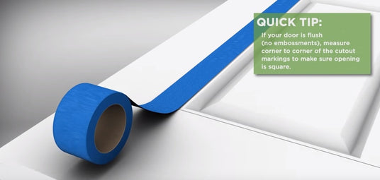 Measure the exterior door (Refer to the measurement guide). Measure and mark the cutting area on the front side of the door. If your door is flush (no embossments), measure corner to corner of the cutout marking to make sure the opening is square.