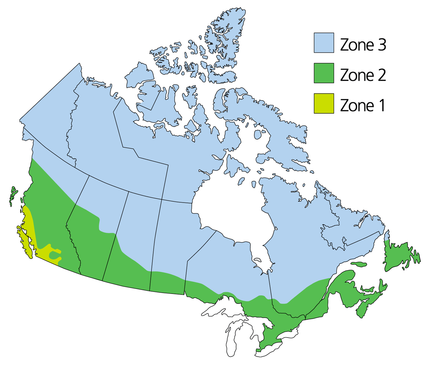 The 2015 Canadian climate zones are determined by heating degree day (HDD) values as found in the Model National Building Code (2010).